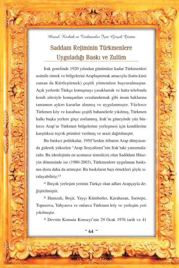Musul-Kerkük ve Türkmenler için Gerçek Çözüm