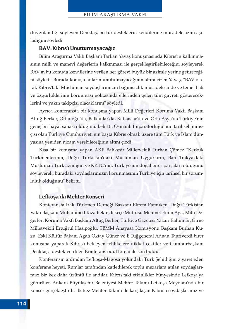Bilim Araştırma Vakfı Faaliyetleri